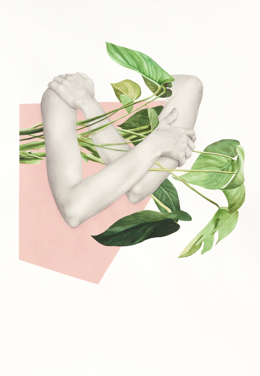 BODY FRAGMENTS nº5, lápiz, acuarela y gouache sobre papel 100×70 cm, 2019.
