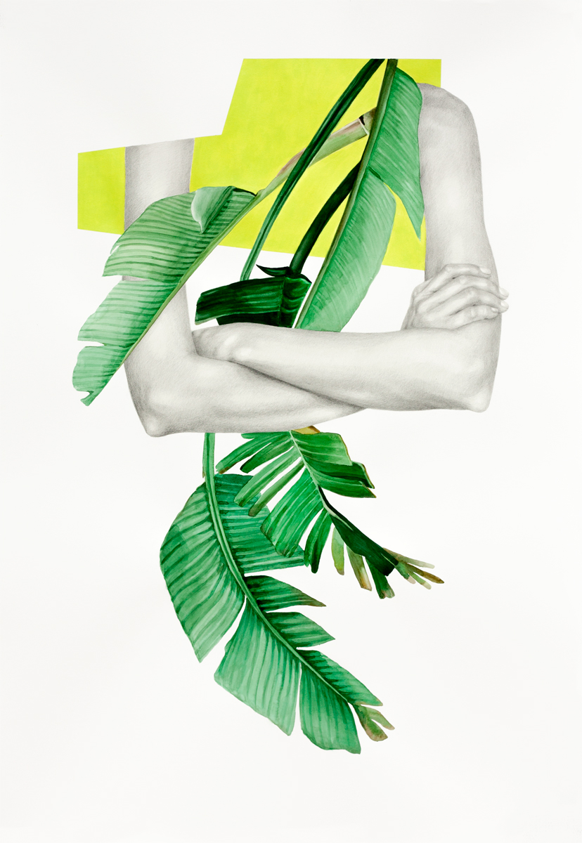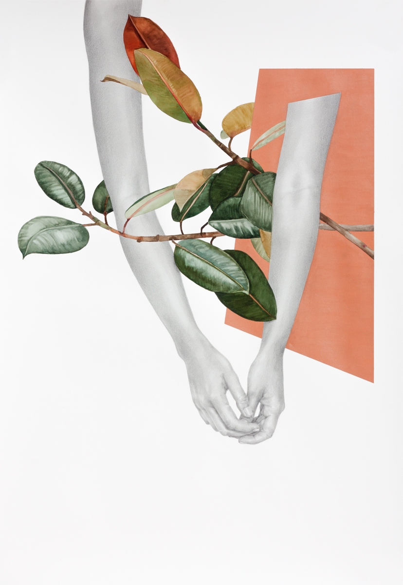 BODY FRAGMENTS nº6, lápiz, acuarela y acrílico sobre papel 100×70 cm, 2019.