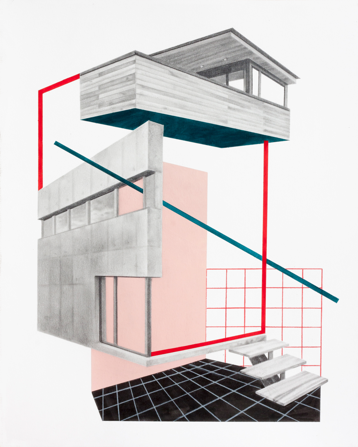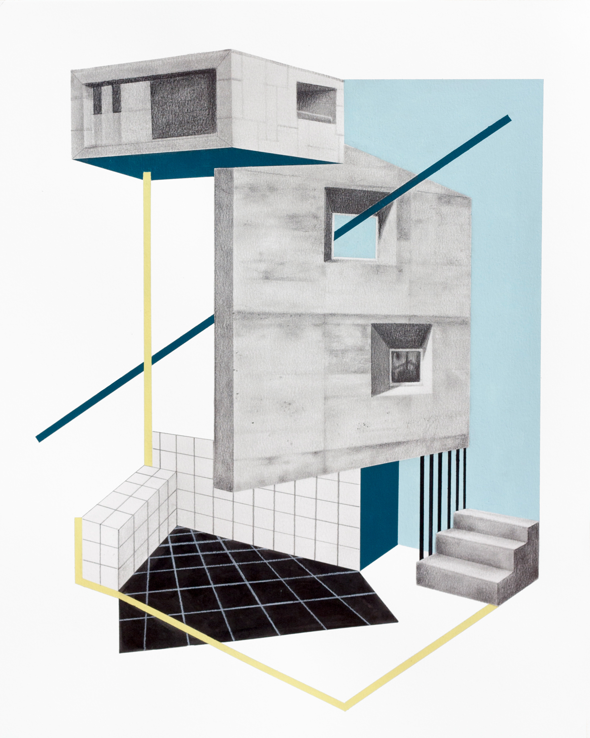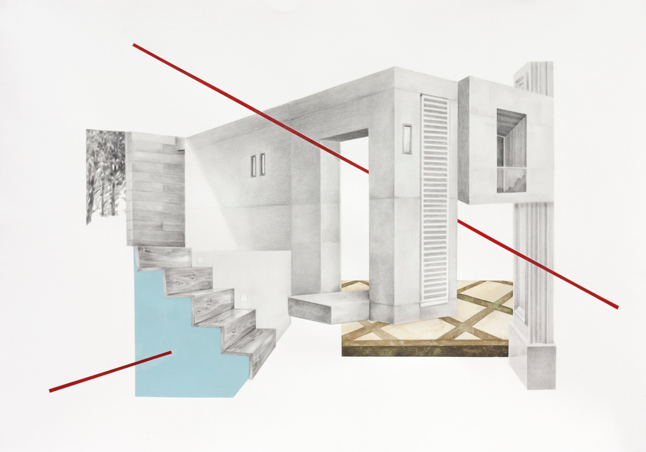UNREAL PLACE #2, lápiz y acrílico sobre papel 40×50 cm, 2019.