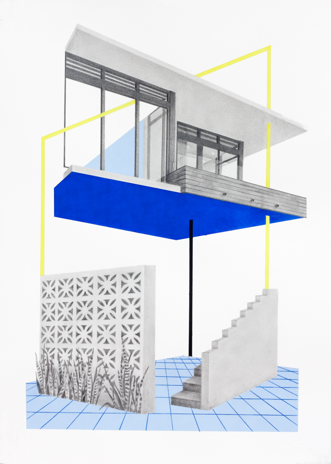 UNREAL PLACE #4, lápiz y acrílico sobre papel 50×70 cm, 2019.